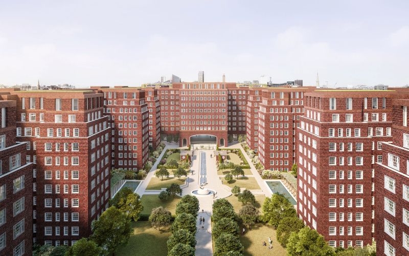 This Project consists of the redevelopment of existing residential apartments providing a new ground plus a 9-storey building and 2 levels of basement, including residential serviced apartments, shops and leisure facilities. A single storey rooftop extension to the retained and refurbished Estate will provide additional residential units. Additionally, a new row of townhouses to the west of the site is proposed and a new landscaped garden will enhance this unique estate and conservation area.
