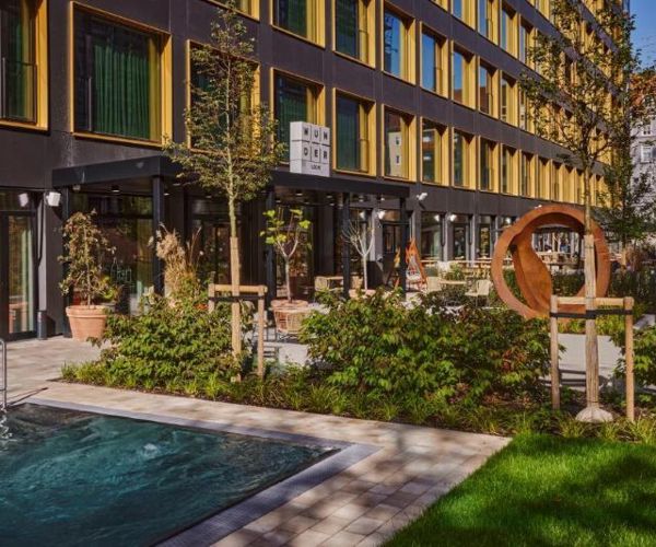 The project consists of the re-development of a 7-storey building into an aparthotel with 353 rooms. It is located on Hofmannstrasse, Munich. The building also has a landscaped courtyard with pool, gym, restaurants and retail space.